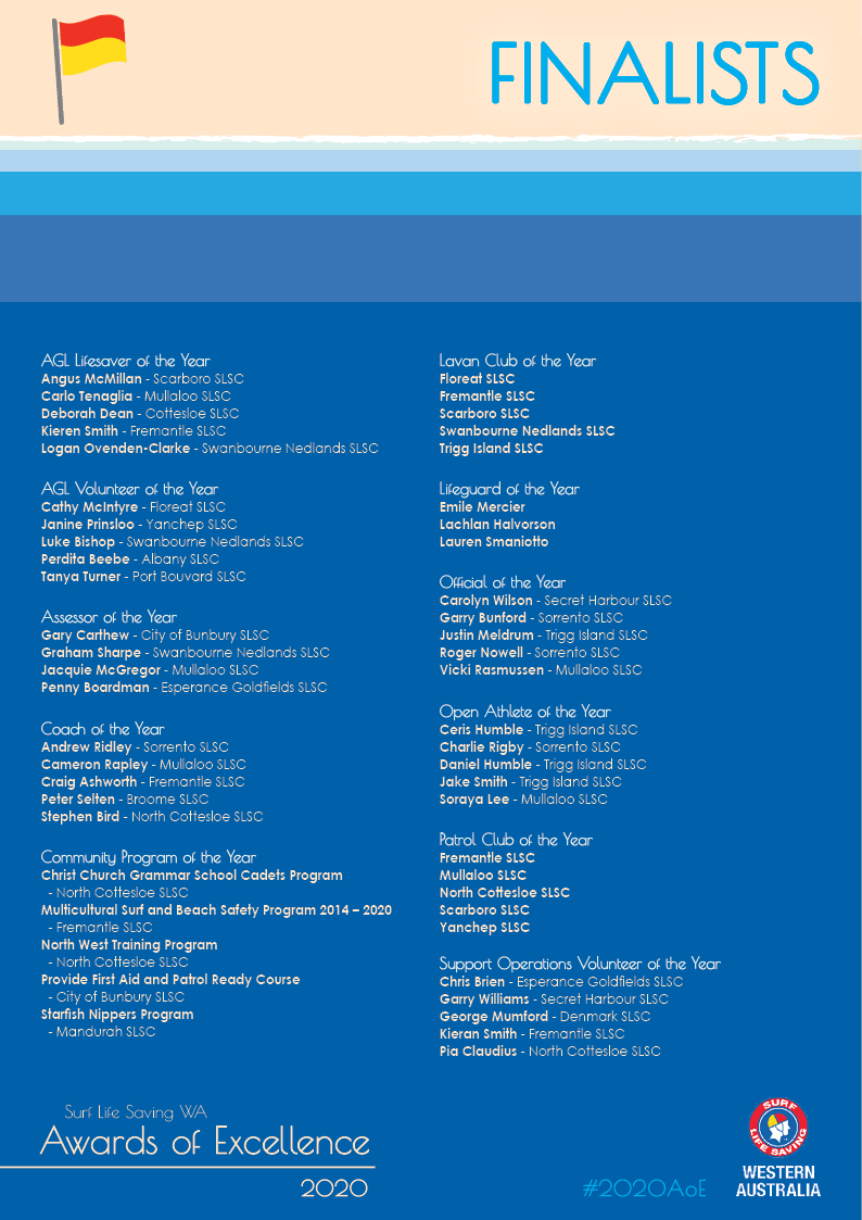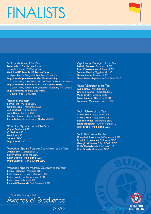 The Surf Life Saving WA Awards of Excellence recognise and celebrate the achievements and contributions of our members throughout the season, across a wide range of categories.